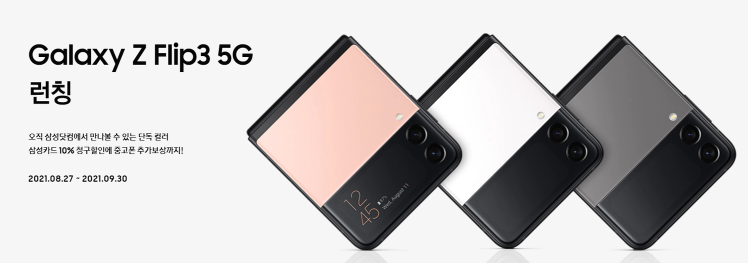 전 버전보다 40만원이 저렴하다는 점입니다. 전 버전(Z플립5g)이 165만원이었는데 Z플립3는 125만원입니다. 쓸 수 있는 가장 좋은 프로세서(스냅드래곤888)를 장착했는데도 가격은 오히려 떨어진 것이죠.