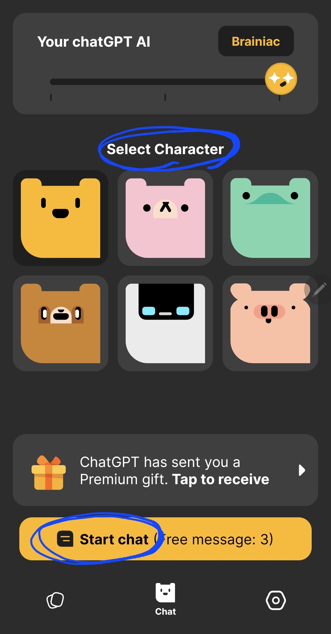 캐릭터를 선택하셨다면 화면 하단에 있는 Start Chat 버튼을 눌러줍니다. 다음과 같이 굉장히 귀여운 채팅방이 나타납니다.