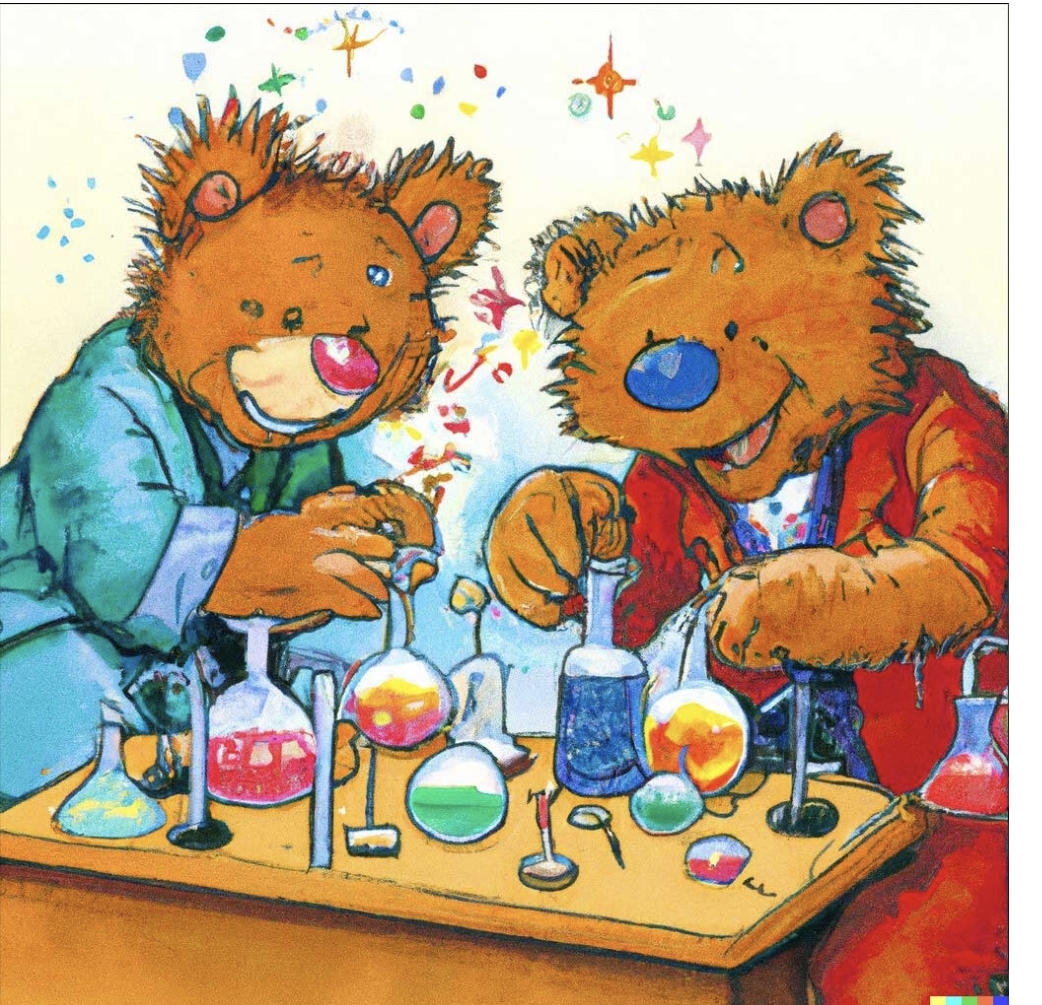 예를 들어서 "테디베어가 실험실에서 연구하는 모습을 90년대 만화 스타일로 그려 줘"라고 하면 다음과 같은 그림을 즉시 그려줍니다.