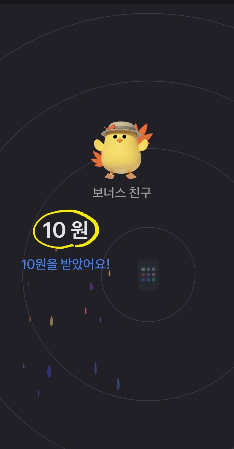 첫 번째로 "보너스 친구"라는 캐릭터가 보입니다. 보너스 친구는 실제 사람이 아니라 시스템에서 주는 보너스입니다. 보너스라서 돈을 많이 주지 않습니다. 보통 1~2원 수준입니다.